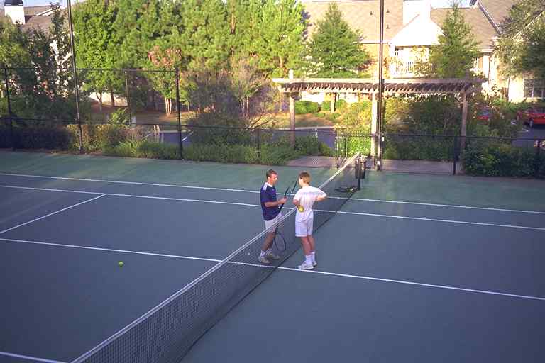 Markus und Stefan bei der Lagebesprechung auf dem Tennisplatz |